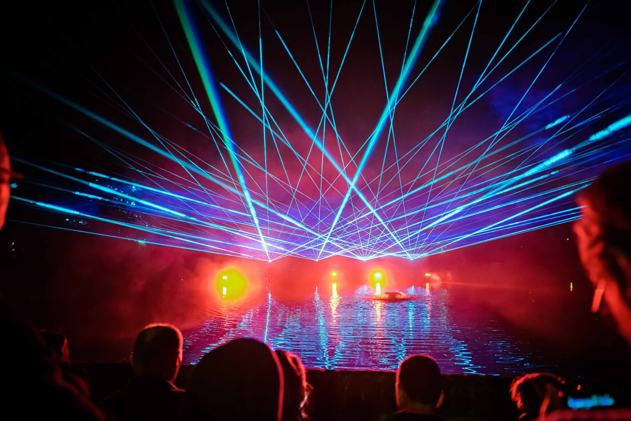 Later op de avond krijg je de apotheose van het klank- en lichtspektakel boven de kasteelvijver.